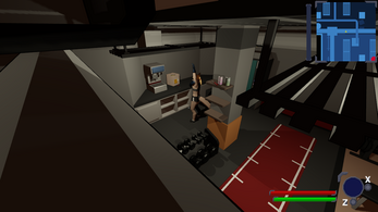 ran at this corner between the shelf and the wall in duncan's apartment, crawling clipped me into the shelf then standing back up sent me through the floor and i was falling for eternity
